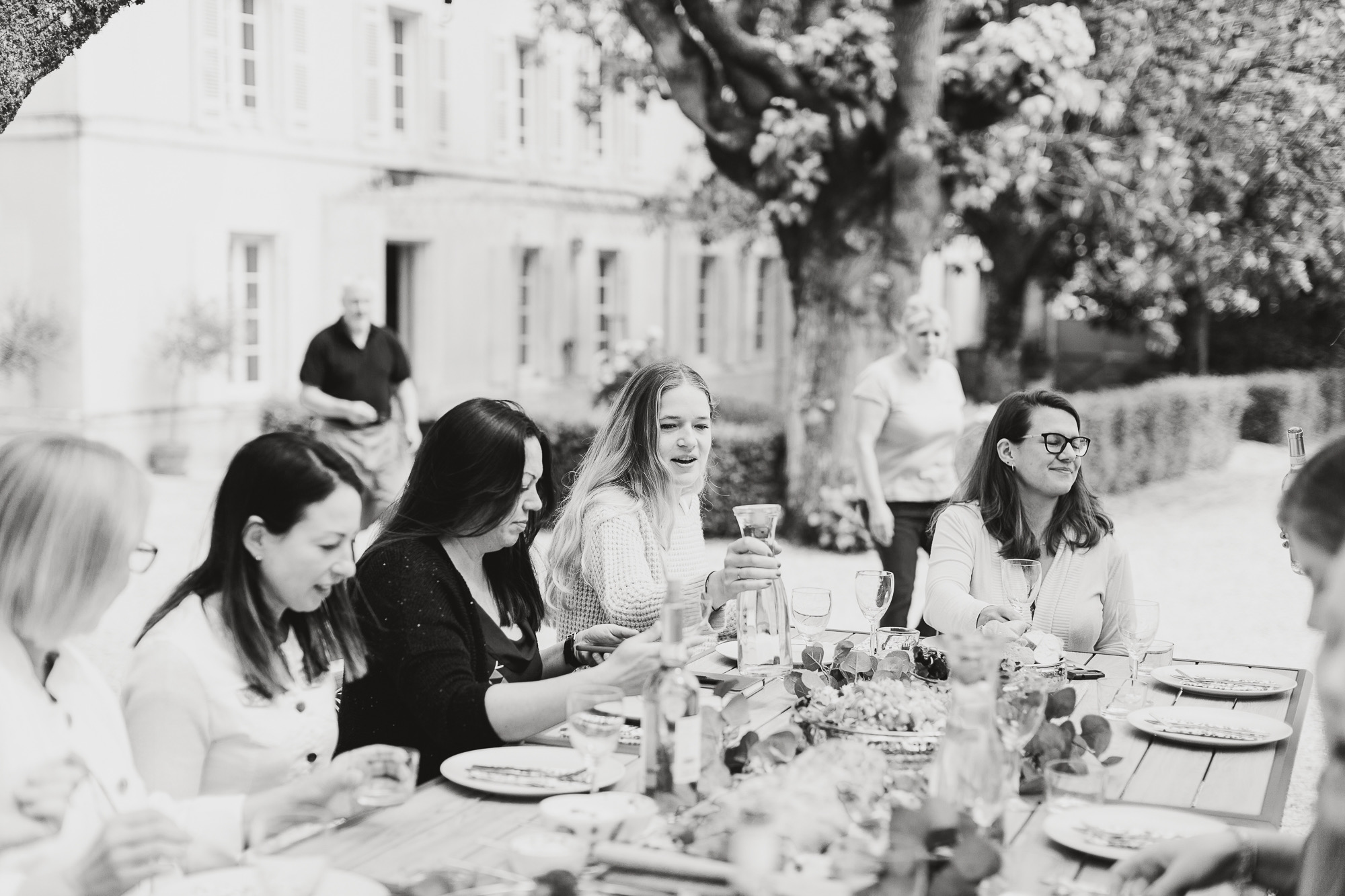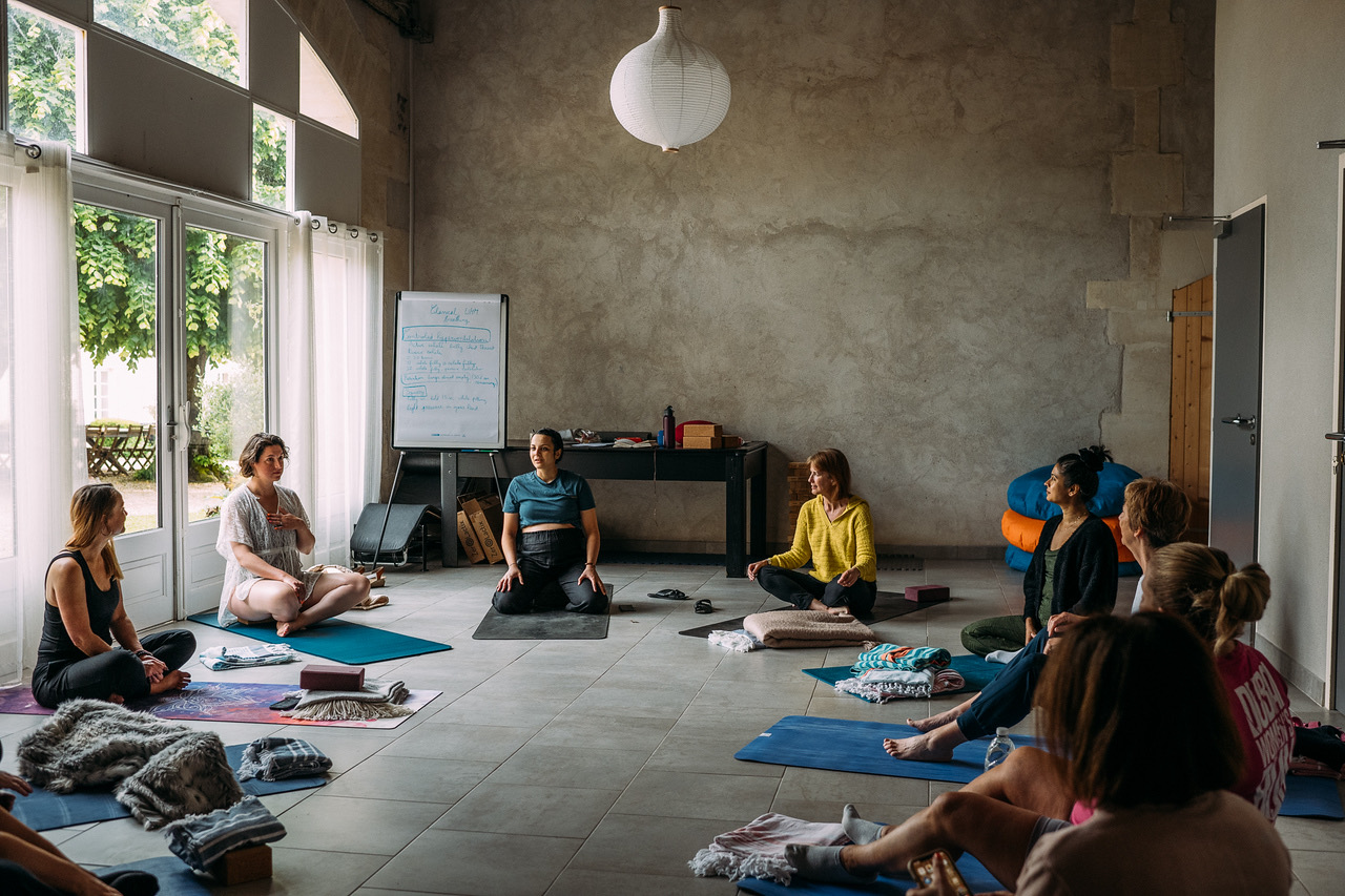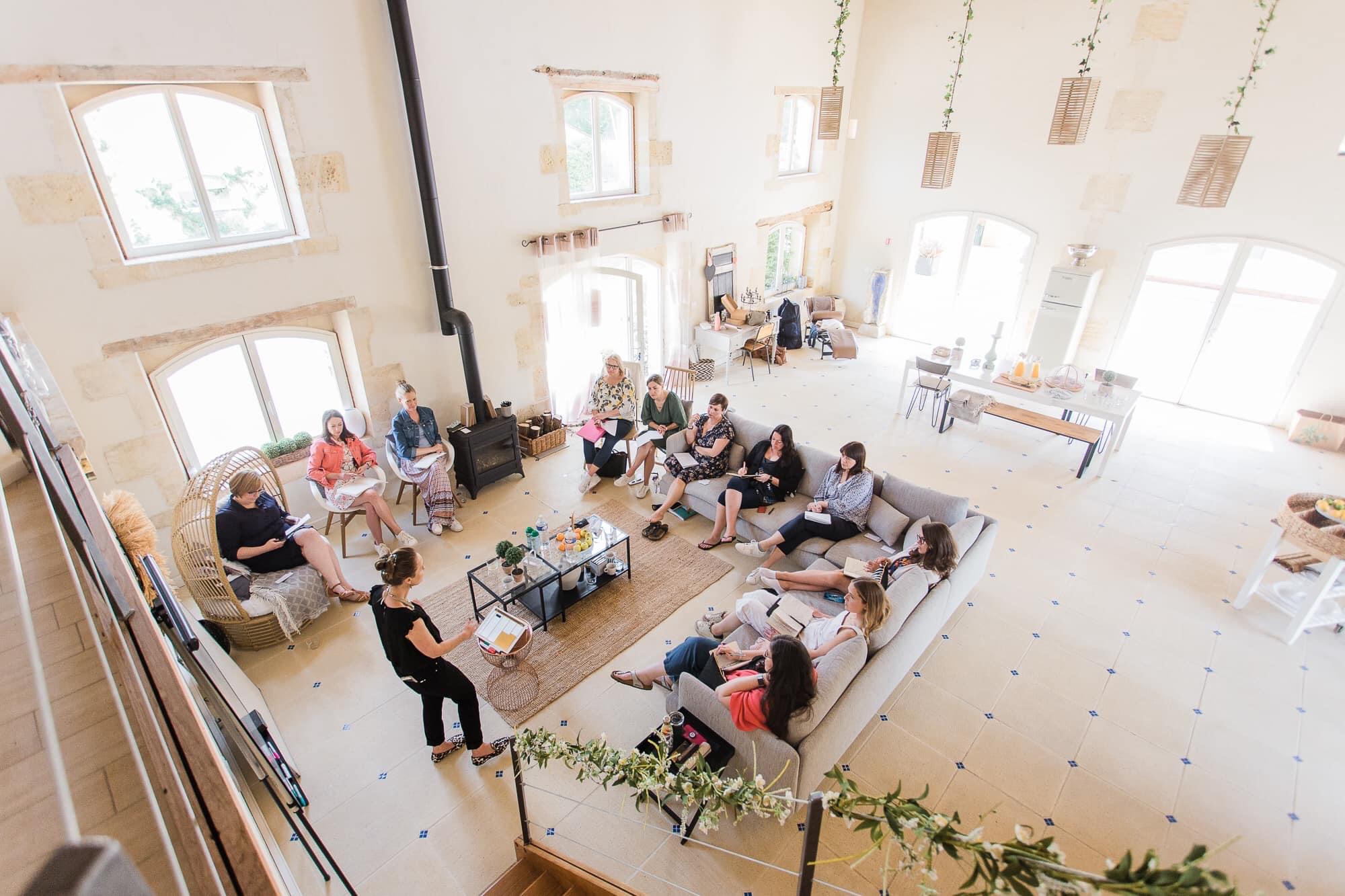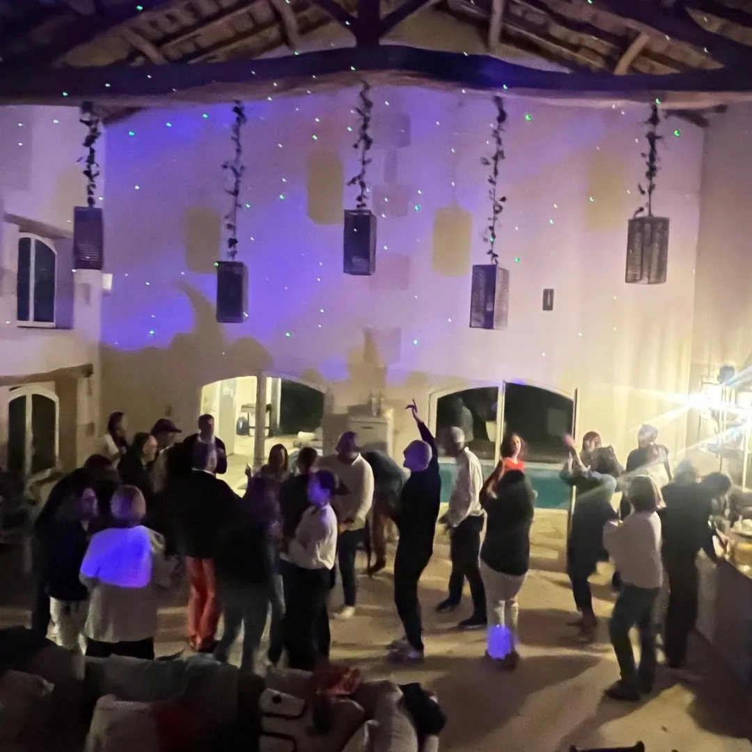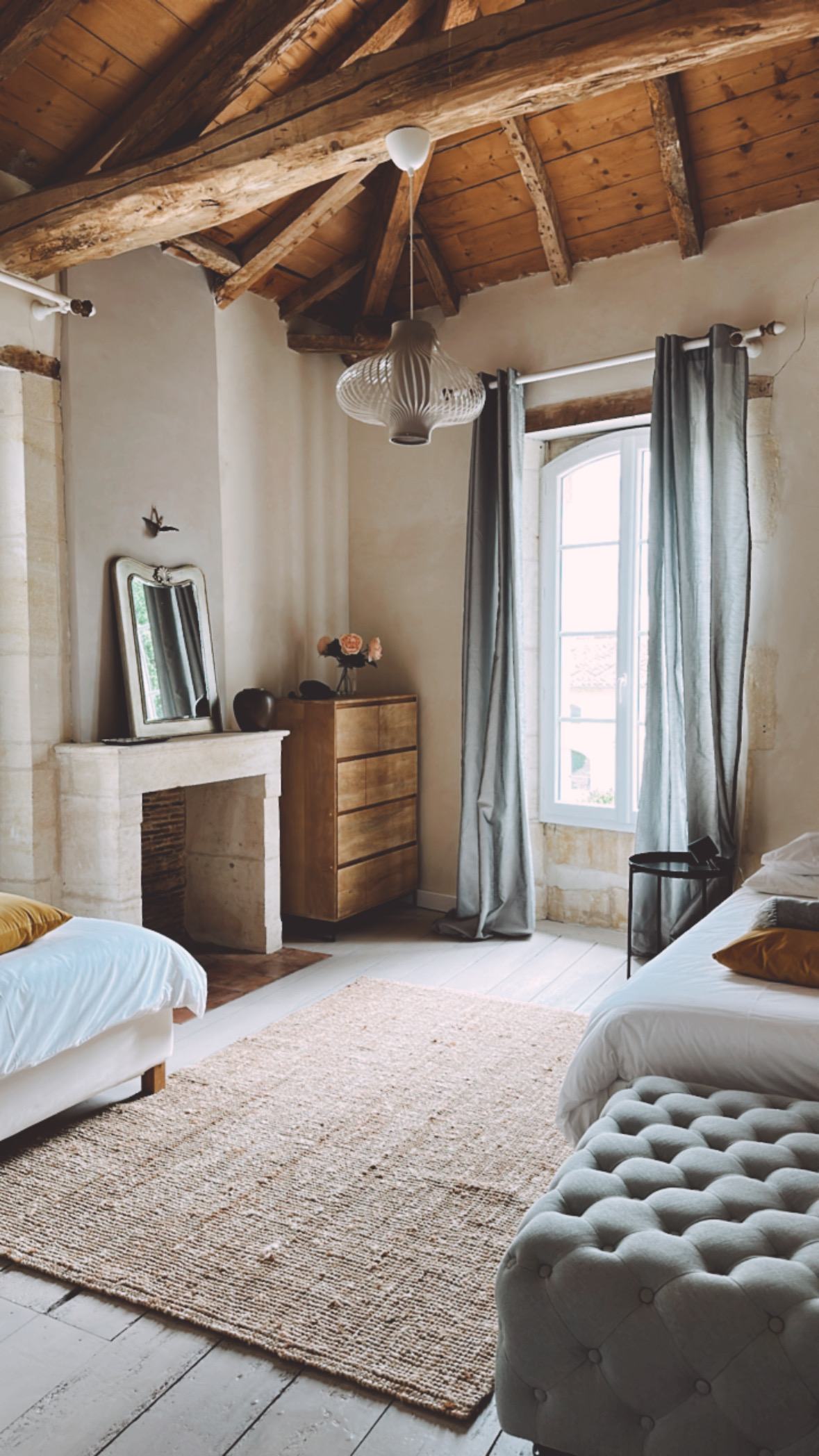 Eight bedrooms across two renovated Cognac barns sleep up to 16, with a private apartment for retreat leaders or the wedding couple included.